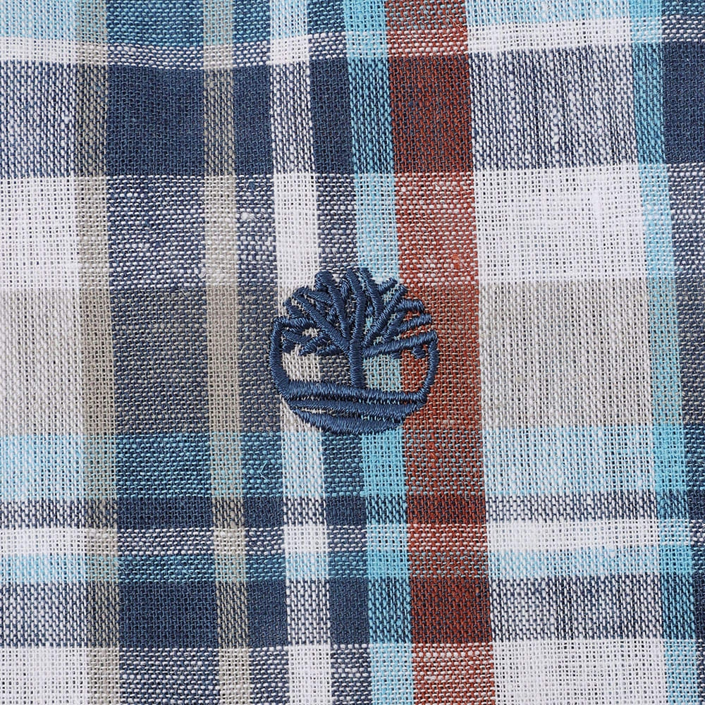 ・우븐 ・54% 린넨, 46% 면 ・150gsm ・버튼 오프닝 ・TBL 트리 로고 자수 ・Timberland X TDC 시그니처 메탈 육각형 아일렛 탭