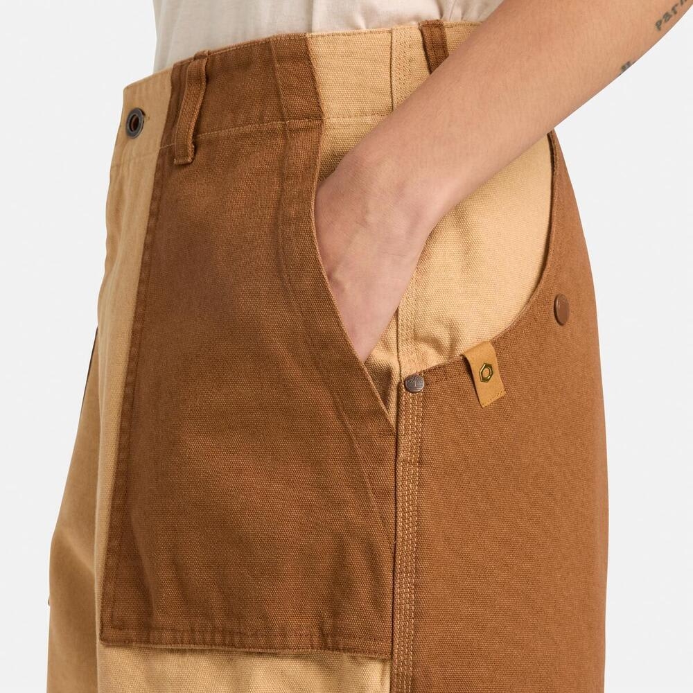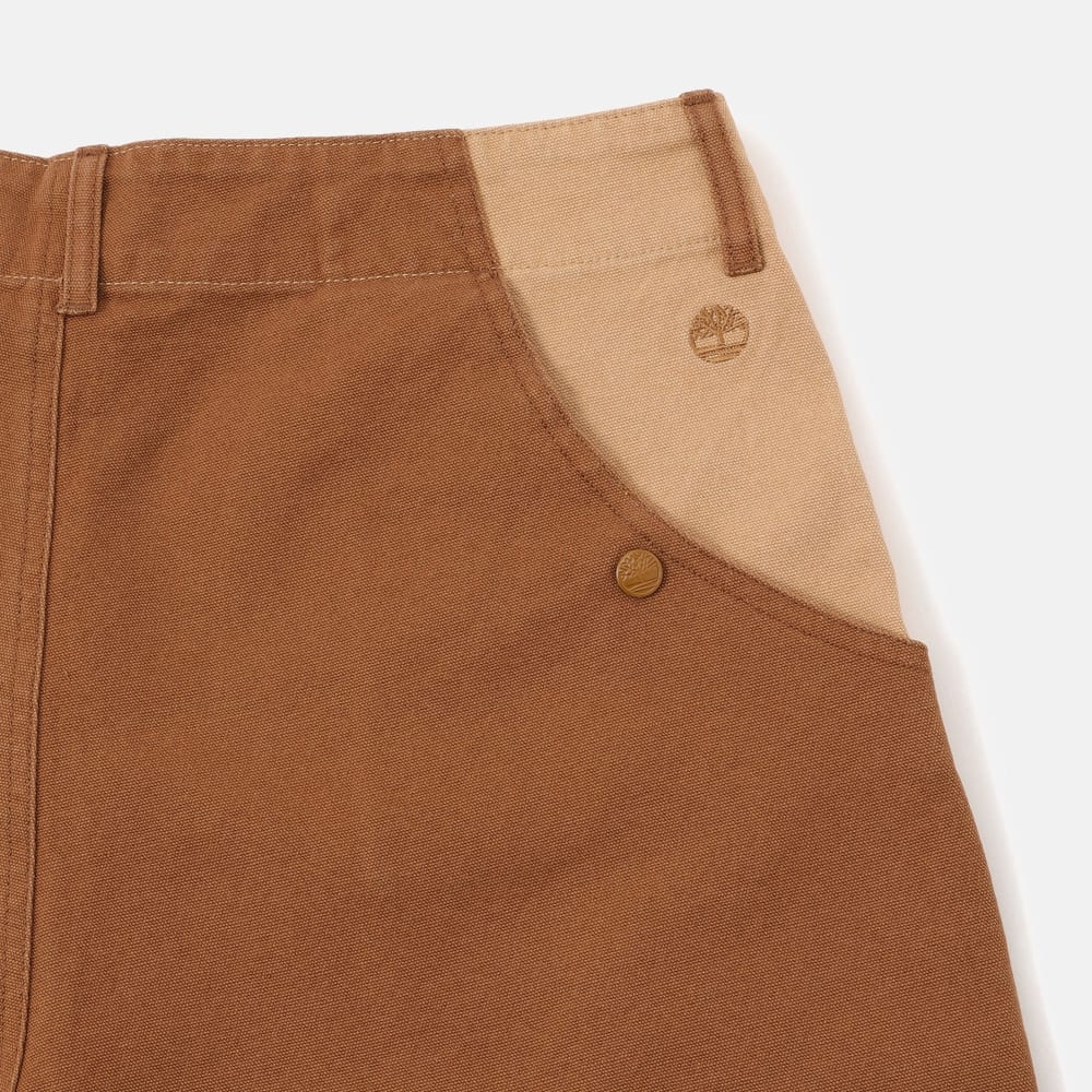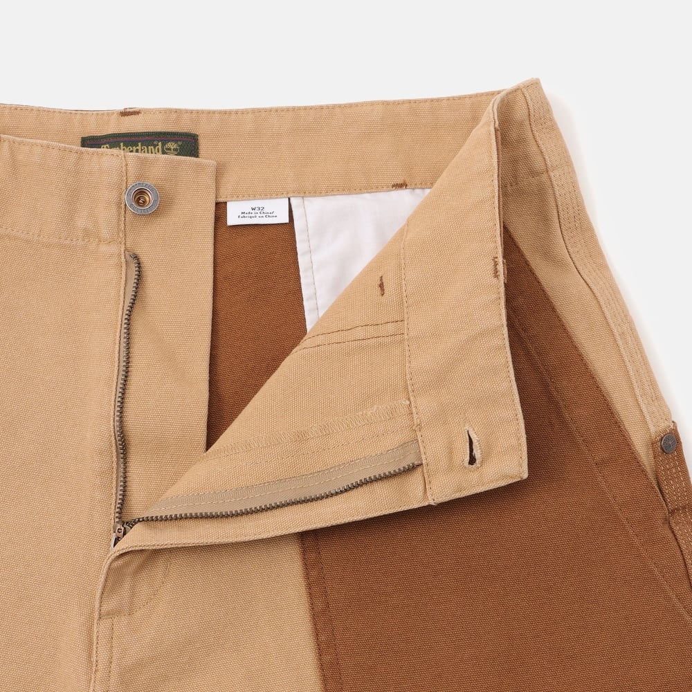 ・우븐 ・100% 면 ・270 g/m2 ・버튼 및 지퍼 클로저 ・바이오 워시 처리(네이비) ・파워 워싱 처리(라이트 위트 부츠) ・버튼 클로저가 적용된 2개의 백 포켓 ・TBL 트리 로고 자수 ・Timberland X TDC 시그니처 메탈 육각형 아일렛 탭